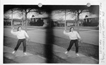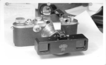 In 1931 a new attachment was offered to let Leica photographers capture live stereo pictures using their normal 50 mm lens. This device consists of a pair of prisms in a sturdy housing suspended in front of the lens by a small arm that fits the accessory shoe. The prisms create two images from slightly different angles on the standard 35 mm negative. Since each is a half fram size, the arm was provided with a half frame viewer. A modified version of the prism housing was offered later on for the Leitz VIII-s projector to project the images suitable for viewing with polarized glasses. A small individual viewer was also offered mounted on a short column. The Stereoly was offered for about ten years. The arm was modified from time to time to work with variations in the camera body design. Notches were provided on the arm to accommodate various models of the 50 mm lens. The one I have has four notches making it a very late version of the device. The serial number is 3037, suggesting how few of these little marvels were made. I show it mounted on a IIIa with a SUMAR lens. The booklet open to the Stereo page is the Leica Accessory Guide published in 1984 by Hove Foto Books I bought this Stereoly twenty years ago in 1981. A year later I took the model pictures at a photography show in the CNE Automotive Building. The PHSC had a booth right next to the stage. The girl playing is my eldest daughter, Suzanne taken April 15, 1982 when she was 12. ABOUT THE IMAGES. Click on any image and in a few seconds you will see an enlarged view in a separate window. The images were taken with a Nikon 990 digital camera and modified as required in Photoshop. All images are © 2001 by the Photographic Historical Society of Canada and may be used if the source is mentioned.