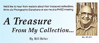 A TREASURE FROM MY COLLECTION The inspiration for our April program was from Bill Belier's popular column in our journal. Bill introduced the program with some background information followed by two "live" versions of his "Treasures" column. Ed Warner discussed restoration of a basket case (View Camera) followed by Larry Boccioletti with a slide show of 50+ year old slides on the Mosquito Bomber, made in Downsview at De Havilland where Larry was the Staff Photographer for many years. |