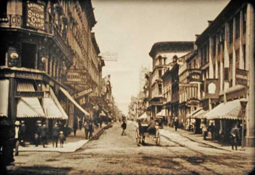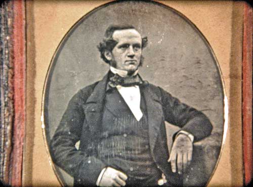 Notman's World begins with a brief recap of the evolution of photographic processes woven in with background on Notman. For example, to illustrate the daguerreotype process, Kish includes a daguerreotype of Notman taken on his wedding day. Notman received lessons in art in his native Scotland before coming to Montreal and founding his famous studios. The first daguerreotypes were too slow to record portraits, but within a very few years, improvements in the process coupled with the creation of the Petzval portrait lens allowed a portrait to be taken in as little as ten seconds. A daguerreotype portrait for 25 cents was within the means of most people whereas a painted portrait was too expensive (scientist Francis Galton noted in a 1905 issue of Nature that his portrait took about 20,000 brush strokes to complete over a period of five days).