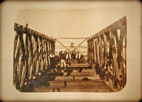 Notman's images show mid 1800s Montreal and its strong business class and a rapidly expanding economy. At the time, Montreal was about 60% English speaking ( most of the business and well-to-do class). Notman himself was an astute businessman. For example, he made stereo photographs of the construction of the Victoria bridge in Montreal and created two portfolios carefully housed in custom made maple boxes. The portfolios contained copies of the stereo views plus other Canadian scenes including ten mammoth 18 x 24 inch contact images. The portfolios were intended for Queen Victoria, to be delivered by the Prince of Wales while he was in Montreal for the opening of the Victoria bridge. Notman anticipated this gift would enhance his reputation in the world. It resulted in his prestigious designation of 'Photographer to the Queen' which he had engraved over the door of his Montreal studio!