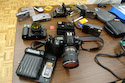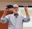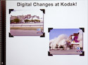 Gordon Brown is both a scientist and a photographer of the Ansel Adams large format school. Brown worked as a scientist for Kodak in Rochester - he came up with the T-Max name for the famous Kodak film - and he taught the well known Zone system exposure technique favoured by Adams. Today he continues to do photography workshops and lectures. Gordon augmented his very professional animated Power Point talk with a collection of vintage and very rare digital cameras as well as some sample digital prints which illustrated the quality possible today from even a modest printer. EASTMAN KODAK. As a Kodak retiree, Brown began with an update on Kodak and the impact of the digital transition on this grand old firm. World-wide staffing has moved from a peak of 120,000 employees down to a modest 20,000 (60,000 to about 12,000 in Rochester). This reflects the parallel transition from vertical integration to outsourcing and collaboration with others to manufacture the Kodak ideas and products. In our last Email newsletter, Bob Lansdale reported the sad demolition of the buildings on the old Kodak Canada campus in the Mount Dennis area of Toronto. Kodak Park in Rochester has suffered a similar fate with building implosions reducing the number of buildings from 218 down to 104. Brown noted that of the remaining buildings, only Building 38 is a coating factory and it is running at 100% capacity to meet the dwindling demand for traditional film products. Black & White papers were discontinued when the last paper coating facility (in Guadalajara, Mexico) was closed. Showing a picture of an apple orchard, Brown noted the he had the urge to be a modern day “Johnny Apple-seed” and sow apple seeds in Kodak Park to restore it to orchards. He also noted the old vertical integration in Kodak was right down to owning their own coal and electricity generating facilities. People joked that there were even “Kodak cows” to ensure an untainted supply of gelatin (see Elizabeth Brayer’s excellent biography of George Eastman to read about the first massive product recall that occurred in the early years of Kodak). WORKFLOW. Gordon compared the traditional and digital work flows: With film, you choose the desired film, take the photographs, develop the negative chemically, print and correct with an enlarger, develop the print, label and file the negatives. The digital workflow eliminates the film choice (you could make similar decisions with camera settings), replaces the chemical development with transferring the image files to a computer, replaces the individual print corrections while enlarging with similar adjustments and more using image editing software, print the corrected image with a digital printer, and save image information in a digital asset management program. HISTOGRAMS. In October 1980 the Journal of American Photography published an article on "Zone Histograms". The author used graphs to depict the proportions of information by "zone" in typical photographs that have a normal distribution vs low key and high key photos. A decade later this histogram concept appeared in Adobe Photoshop 1.0 and is one of the fundamentals of digital photography. [If you want to know more about the zone system, pick up a copy of "The Print" and "The Negative" by Ansel Adams. These books from the 1960s are still in demand because the basic concepts apply to digital photography as they do the traditional processes. And to learn more about Adobe - my favourite software company - track down a copy of "Inside the Publishing Revolution" by Pamela Pfiffner from Adobe Press 2003. - Bob Carter] LIKE A NEGATIVE. Digital cameras provide images in a variety of formats. An almost universal format is the Jpeg which is a compressed version of the image data collected by the sensor. The Jpeg provides an image close to the quality of the original (raw format) in a much smaller file size with very little adjustment leeway. The Jpeg is like a print - you cannot add back what is missing. The better cameras today offer a "raw" file format which is like a traditional negative. Raw files contain all the data collected by the image sensor with no unalterable adjustments. However; the format of the raw data file is not standard with each camera maker having one or more versions. To avoid file orphans, Adobe is trying to have its DNG format accepted as the standard. Meantime, programs like Adobe Camera Raw and Adobe Lightroom can read over 140 varieties of raw files and transform them into more conventional formats. Along with the conversion, ACR and Lightroom allow you to adjust exposure, light balance, and other parameters just as film photographers do with their negative processing and enlarging techniques. SENSORS. Kodak has a long history in the digital arena with its research into CCD image sensors and manufacture of these essential cornerstones of the modern digital camera. I found it interesting that Leica chose a Kodak sensor for its M8 rangefinder digital camera - the most recent version of the fabled post war M3 of 1954. The sensor has tiny lenses on each pixel so even the edge cells capture all the available light rays ( this makes it feasible to use older lenses - even 1930s screw-mount - on the M8). Other digital cameras resort to custom designed lenses that keep all rays perpendicular to the sensor, necessary since each sensor cell has a finite physical depth vs the surface sensitivity of film. Kodak designs and makes CCD sensors for the high end cameras and camera backs including Hasselblad. The CCD sensor is more expensive to manufacture than the more recent CMOS sensors, but it has greater colour fidelity and is more light sensitive. Today’s Kodak still designs cameras - it’s one of the top names in digital camera sales - but manufacturing is outsourced [Leica went a similar route years earlier with its collaboration with Minolta, Panasonic, and Fuji]. Modern companies tend to control product design and distribution but 