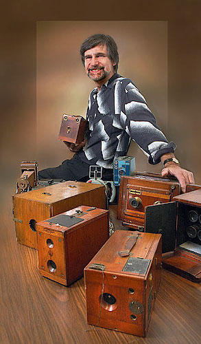 The much older camera obscura was literally a dark box with a pin-hole or lens. The lens projected a view on to paper or a light coloured inner wall. This ancestor of the photographic camera was made in all sizes from a small box to a large single room building. The camera obscura has survived to this day as an amusement at some seaside resorts where the room-size device provides a silent but moving view of the tourists and surroundings. A number exist in Europe - fourteen in the UK, one in Havana (see PHSC EMail Newsletter V4-10, page 3), two in the USA, and one in Canada at the Sherman Hines museum in Liverpool NS.