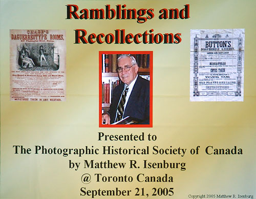 The illustrations under 'Images' in the right sidebar were captured from the screen with a Sony F828 during Matt's presentation and subsequently cleaned up in Photoshop CS2. Contents and images are ©2005 Matt Isenburg and may not be used without his permission. The bottom images under 'Digital Studio' show Bob Lansdale capturing Matt's portrait for use in the journal and E-Mail newsletter. These images are ©2005 PHSC. Click on any small image to see it larger in a separate window.