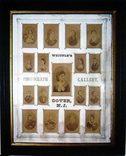 She showed the item to Matt. Intrigued, he successfully bid for it. The sign was for Weitfle's Photograph Gallery in Dover, NJ, and was decorated with CDVs. Interestingly, Matt was contacted later by the grandson of Weitfle who wanted to purchase the sign. Matt offered to swap for a similar sign from another gallery if the grandson ever finds one.