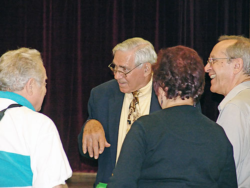 After the presentation, Matt and Elizabeth chatted with the audience and Bob Lansdale did one of his commemorative portraits using a Nikon D70 and a few willing hands to manage the lighting.