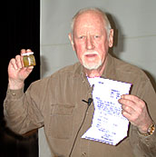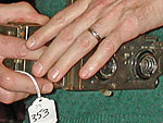 Ed Warner delighted us with another tale of resuscitating three basket cases. His lesson for us was to ’never over-look’ any ’junk’ cameras or parts at a show or auction. To prove his point, he won the bid for lots 4 (parts of three wooden cameras) and lot 14 (two lenses - one a Lancaster, the other a Dallmeyer).