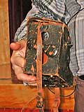 The second product Ron suggested was potassium lactate (also listed on the Talas web-site under ’chemicals & deacidification’) as a leather protection and means to neutralize mould and mildew. He cautioned the audience to avoid using potassium lactate on bellows since it may dissolve leather glues. The British Library prefers potassium citrate instead (British Museum leather dressing formula).