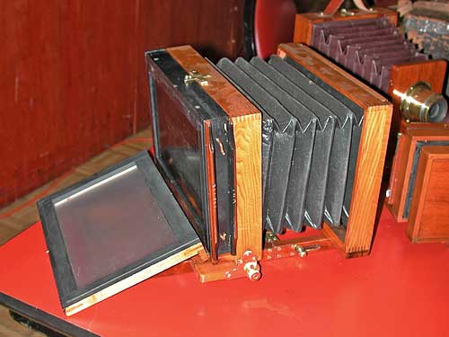 For the first camera (Anthony Clydesdale half-plate), Ed made the missing brass rails, wooden parts and lens board. He fitted the Lancaster lens from lot 14 to finish the camera.