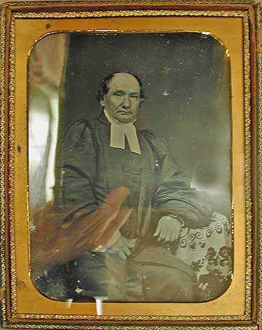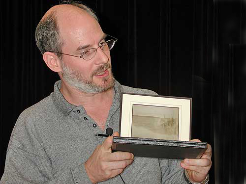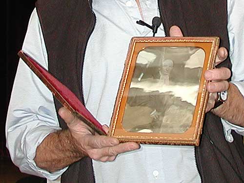 Les brought three items related to recent journal articles: a large chromotype print of a train on the old Hamilton & Lake Erie Railroad somewhere near Hamilton, Ontario; the rare full plate daguerreotype of reverend Thomas Creen; and a Vermeer's camera - one of the tools available to budding artists to compare their efforts on canvas to the actual scene for tone and composition. The device was invented by Anson Cross of Boothbay Harbor, Maine around 1934 to aid the students of his art school.