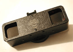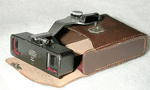 In 1931 a new attachment was offered to let Leica photographers capture live stereo pictures using their normal 50 mm lens. This device consists of a pair of prisms in a sturdy housing suspended in front of the lens by a small arm that fits the accessory shoe. The prisms create two images from slightly different angles on the standard 35 mm negative. Since each is a half fram size, the arm was provided with a half frame viewer. A modified version of the prism housing was offered later on for the Leitz VIII-s projector to project the images suitable for viewing with polarized glasses. A small individual viewer was also offered mounted on a short column. The Stereoly was offered for about ten years. The arm was modified from time to time to work with variations in the camera body design. Notches were provided on the arm to accommodate various models of the 50 mm lens. The one I have has four notches making it a very late version of the device. The serial number is 3037, suggesting how few of these little marvels were made. I show it mounted on a IIIa with a SUMAR lens. The booklet open to the Stereo page is the Leica Accessory Guide published in 1984 by Hove Foto Books I bought this Stereoly twenty years ago in 1981. A year later I took the model pictures at a photography show in the CNE Automotive Building. The PHSC had a booth right next to the stage. The girl playing is my eldest daughter, Suzanne taken April 15, 1982 when she was 12. ABOUT THE IMAGES. Click on any image and in a few seconds you will see an enlarged view in a separate window. The images were taken with a Nikon 990 digital camera and modified as required in Photoshop. All images are © 2001 by the Photographic Historical Society of Canada and may be used if the source is mentioned.