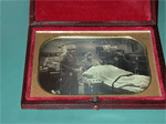 My Four Favourite DaguerreotypesMike Robinson is a modern Daguerreotype photographer. He was featured in the Daguerreian Society Year 2001 Annual. He has images in an exhibition by Hallmark Cards in St. Louis. These are four modern Daguerreotype images taken by Mike and mounted in a modern version of the traditional Union case. Mike's first image is a half plate daguerreotype of his baby daughter Grania Grace Christie Robinson. She kept absolutely still for this 13 second exposure. The second image is a still life titled Astronomy. It is one of six images taken for the Hallmark show in St. Louis. Each image represents one segment of Natural Science in the 19th century. This image shows a Gregorian Telescope and a Sunshine Recorder. The Gregorian Telescope uses concave mirrors to focus the image of distant objects. An eyepiece is used to view the image created by the mirrors. The Sunshine Recorder focusses the rays of the sun on a length of cardboard. Over the course of the day a track is burnt into the paper with gaps during the cloudy periods. The path is calibrated to the hour of day so the number of hours of sunlight can be calculated. The third image features his daughter being weighed at 12 weeks of age by their mid-wife using the traditional scales. The image is part of a series on contemporary Canadian occupations. The fourth image is a Daguerreotype taken during the course of an operation at Massachusetts General Hospital in Boston. On October 16, 1846 the first operation using ether as an anaesthetic was performed at Massachusetts General. Prior to this date the best that could be done was to give the patient a strong drink and perform the operation at top speed - including such procedures and amputation of a limb! The event was re-enacted at least twice and recorded by photography. The first view was taken by the famous Boston Daguerreotypists, Southworth & Hawes. The authorship of the second view was not known (see The Spirit of Fact, published by George Eastman House in 1976, image 102.). In January 2000, Mike was approached by a writer who wanted a modern Daguerreotype taken during a live operation for an article due for release shortly in Discover magazine (February 2002) . Mike prepared 3 plates and at 7:00 am he began setting up for the shoot. The operation was scheduled to begin at 8:00 am. A fume hood was installed in a nearby room to permit Mike to develop his images on the spot. The first problem he hit was illumination. In spite of the high light level in the room, an exposure would take three minutes. Mike brought a 2,000 watt tungsten light with him for just such a situation. He was advised that all electrical instruments had to be inspected and approved by the hospital electrician. He learned that none of the previous camera crews had managed to have their lights approved. His was no different. A small electrical leak made the light too dangerous to use in the operating room. The electrician suggested replacing the plug. The proved to be the source of the leak and Mike was cleared to use his light. He calculated that the exposure would now be a snappy 75 seconds with the light bounced off the ceiling. The operating room was the same one used in the famous 1846 procedure. To Mike's eye the only change was the addition of a projection screen which blocked the north light window that aided Southworth and Hawes. Once the patient was put under, Mike took his shots. The best one was a two minute exposure. ABOUT THE IMAGES. Click on any image and in a few seconds you will see an enlarged view in a separate window. The images were taken with a Nikon 990 digital camera and modified as required in Photoshop. All images are © 2001 by the Photographic Historical Society of Canada and may be used if the source is mentioned, except the daguerreotype images which are © 2001 Mike Robinson and may not be reproduced without his permission.