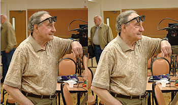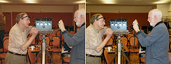 The images of Stan were taken after his presentation using my Sony F828. The "stereo pairs" were taken by shifting my weight from one foot to the other to approximate the shift in view point for the left and right eye. For each stereo image, the stereo pairs were combined in Photoshop and adjusted as required.