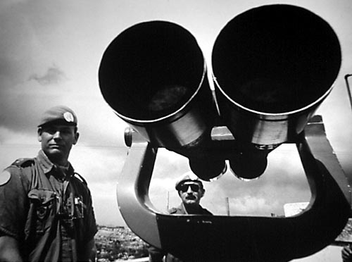 Boris is shown here with some of the cameras used to make his prize winning images. He is a natural story teller with an engaging style that grabs your attention as do his images. If you enjoy the images here and want to see more, you can purchase his book 20 Years of Photojournalism (or borrow it if you are a member of the PHSC by contacting Gerry Loban). His talk was illustrated with a couple of trays of slides covering his career. Each slide has its own story, but you will have to catch Boris at another presentation to hear his wonderful stories. Of course PHSC members can borrow an audio tape of his talk and most other talks presented at our meetings. ABOUT THE IMAGES. Click on any image and in a few seconds you will see an enlarged view in a separate window. Click on your browser's back arrow to return to this page. Please note that these images are the copyright of Boris Spremo who has kindly allowed us to display them. The images were captured from the screen during the slide show using a Nikon 990 digital camera and adjusted and sized in Photoshop. Bob Carter |