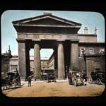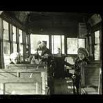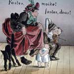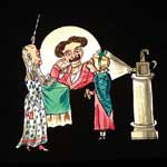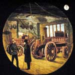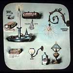 With a background in theatre, "Professor" Lambert provided song and sound effects to accompany his show. His choice of slides gave the feel of the magic lantern shows of yesteryear while illustrating a history of the shows and their typical content and social messages -- all this with thumbnail histories of such diverse subjects as lighting, effect of bicycles and the auto on roads, rideau canal, and the train cars built to carry immigrants to the prairies. I have picked a small selection of his slides to give you an idea of the breadth of his subject matter. If you have a change to see one of his shows, DON'T MISS IT! His patter, song, sound effects, and manipulation of the animated slides bring home the amazing thrill of the magic lantern shows of a century ago. ABOUT THE IMAGES. Click on any image and in a few seconds you will see an enlarged view in a separate window. Close the smaller window to return to this page. Please note that these images are the property of Lindsay Lambert who has kindly allowed us to display them. The images were captured from the screen during the slide show using a Nikon 990 digital camera and adjusted and sized in Photoshop. Bob Carter |