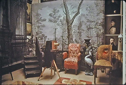 The procession of portrait slides was interspersed by illustrations of studio layouts and typical portrait cameras. It was interesting to see the similarity between a family grouping shot by Brady in the 1860s and a circa 1940s colour snap. Popular illumination began with northern exposures for soft even daylight, then evolved to a mixture of natural and electrical lighting, on to totally electrical with its potential for dramatic shadows and contrasts then back to natural lighting in recent times via outdoor locations. |