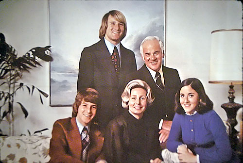 In most cases, retouching was necessary. The modeling lights used to give the subject depth and dimension emphasized shadows and blemishes. For news cuts (those photos that appear in newspapers announcing appointments), Gerry would take a few shots, select the best one, have the negative retouched, and print a 5 x 7 inch glossy for the newspaper. Since retouching was very much an art, most small studios, including Gerry's, sent their negatives to retoucher. Various props were used to add class and elegance to the portrait. For example, a selection of drapes were available for girls to wear over strapless bras,giving the illusion of elegant evening dress. |