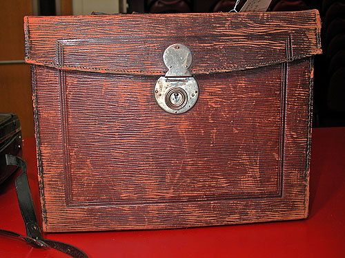 The lovely old leather case with the purple velvet lining (above) came complete with a number of cut film backs.