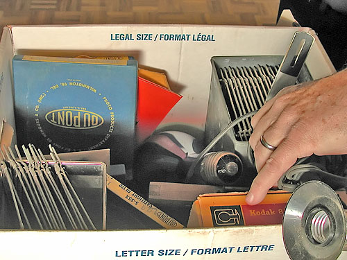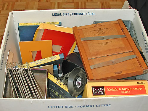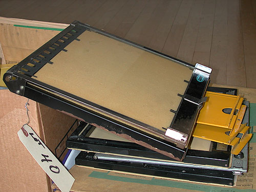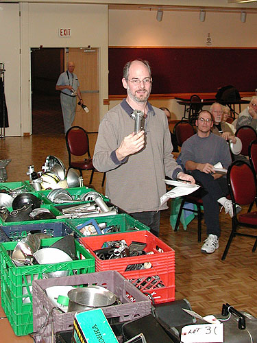 Ed Warner and team swung into action December, 2004 to sell more memorabilia from the estate of the late Larry Boccioletti. The team sold everything including the (kitchen) sink in a fast paced session featuring a wide range of darkroom, movie and low end camera gear! The heavy objects (two enlargers, the sink, a huge print dryer, and a vacuum easel/horizontal copy camera stand (actually a modified cine titling gizmo) were shown by photo only. Buyers made arrangements with the auction team to pick up their purchases at a later date.