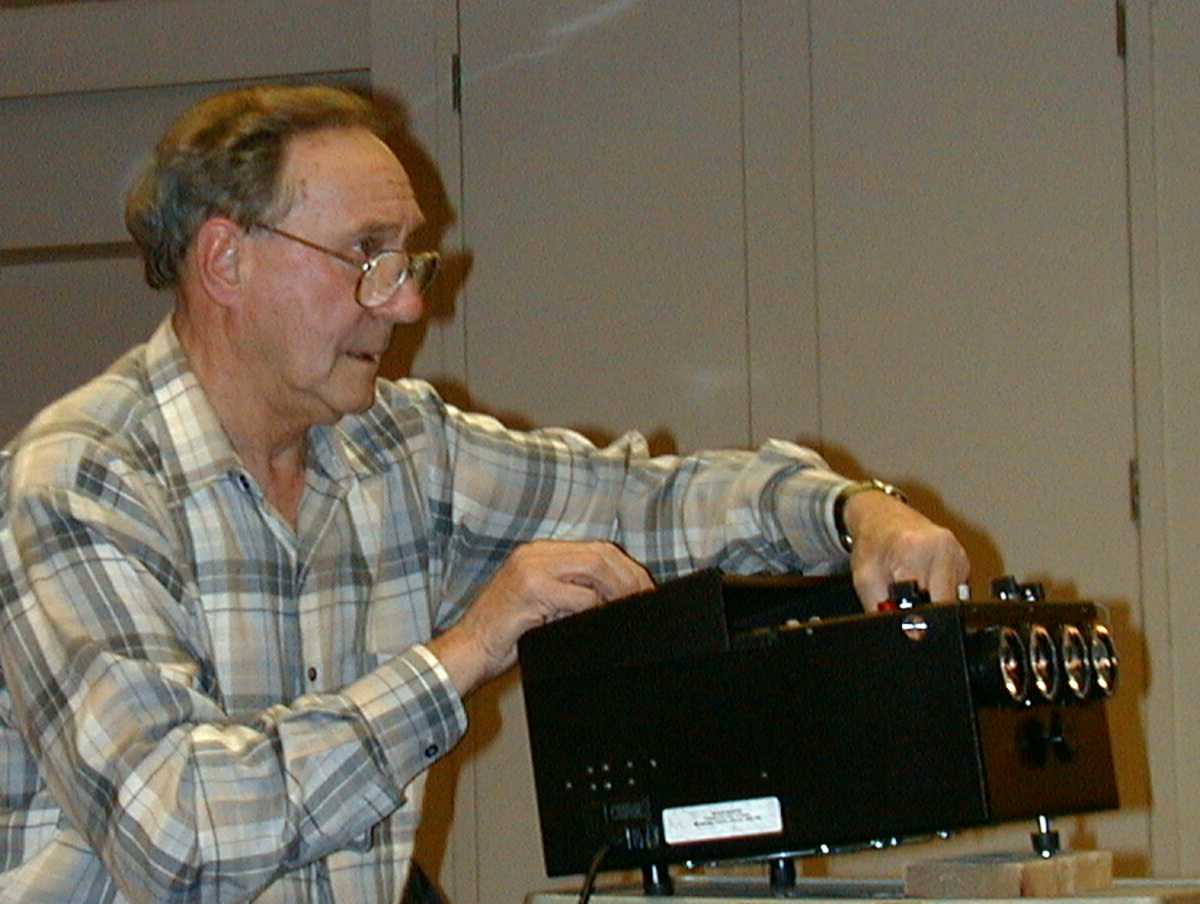 THE PROJECTOR. The slides were shown using Stan's personal Brackett stereo projector. This custom made machine has a built-in dissolve for smooth transitions. The slides must be loaded manually, however. Stan explained that the Brackett projectors are no longer available since Mr. Brackett has stopped making them (Stan's projector is a very early one). The Brackett is a very heavy, well made projector which uses Kodak commercial 35mm projector lenses and components. An alternative stereo projector is made in Germany, but it is a single stereo. To match the Brackett, you have to purchase two projectors and a dissolve unit.