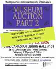 Toronto. NOTE THE NEW DATE. Part 2 is coming fast – our 2026 Museum Auction Part 2, Sunday, February 15, 2026 in Long Branch (south west Toronto) at the usual venue BUT at the slightly later time (see revised poster) – free parking [OVERFLOW AT GO TRAIN LOT JUST WEST of HALL] and free admission.