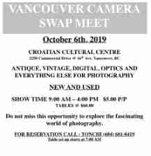 The fall camera swap meet out in Vancouver will be held on October 6th this year.