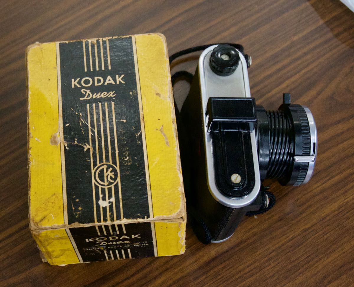 He demonstrated this with an example of a 1940-42 Kodak Duex, complete with the original box, and instructions. The camera clearly states “Made in Canada” on the lens plate. Mark acknowledged that many cameras etc. so marked were actually assembled in Canada from parts mainly made elsewhere. This style of “manufacture” reduced the duty charged on finished goods. In the case of the Duex, Mark said it was one of the few Kodak models actually made here making it relatively rare.