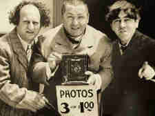 Click the link and browse and print Ken Metcalf’s latest newsletter on the famous Graflex and Graphic cameras. Ken always has an interesting little photo for the left of his masthead. This time it is a publicity still of that famous trio, The Three Stooges, trying to earn a buck by taking and selling some Speed Graphic photos at 3 for a dollar.