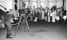 The design of the camera meant that it was revolved by mechanical means as the film moved across the focal plane.