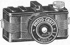 In a way this ad for a PHOTO-CRAFT camera is similar. The popularity of the minicam a decade earlier led to some box cameras such as this one being shaped like a “candid camera”. This Bakelite marvel with a cheap lens and simple shutter came as a “kit” of the camera, three rolls of 127 film, and a camera case (likely pressed paper given the price).