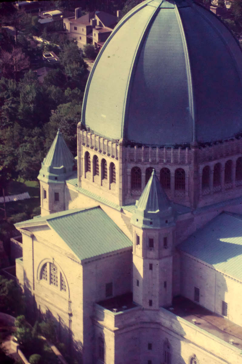 Toronto. This photo of a Montreal landmark, St Joseph’s Oratory on Queen Mary Road, was taken by an Exakta and 135mm Steinheil lens on Kodachrome from a CJAD news helicopter.