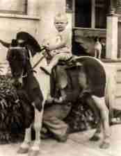 For the photographer, the pony became a prop and the sunny outdoors his studio. At night the orders of the day could be processed and printed, ready for delivery to the proud mother for just a few pennies. One such photographer came around when I was about two or younger, capturing me and our little terrier standing on the porch of our home.