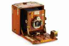 Toronto. Sometimes at our fairs, shows and auctions, you see a plate or roll film camera made of varnished wood and may think the leather or leatherette material had been removed. Well, that may not be the case. Cameras for use in the tropics must survive high heat, humidity, bugs, mould, dirt etc.