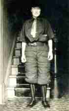 Journal co-editor David Bridge writes in part, “Hope you are enjoying this warm late summer. We found the attached lady in a bag of photos Louise bought … at the last auction. The only inscription on the back [is] ‘AEB Aug 1906’. Lorne Shields is unable to definitively say that this is a bicycling outfit – perhaps your multi-talented readers can come up with some further fashion opinion? Skiing outfit? In August? What’s in the pocket?”