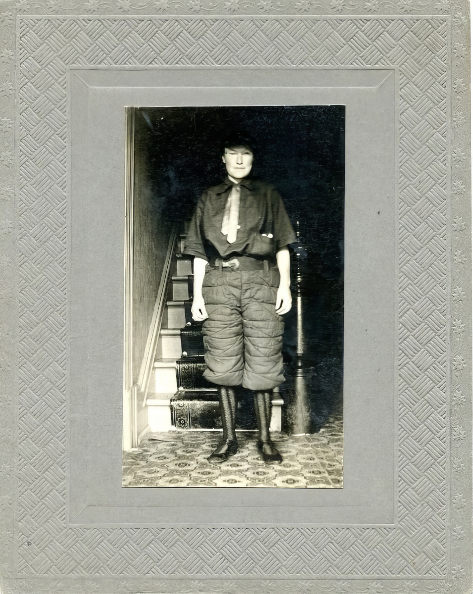 Toronto. At a recent PHSC auction, one lot of photographs included the photo at left. The lady seems to be wearing an unusual costume with what looks like padded bloomers. Also, the lady seems to have vaguely Oriental facial features. The photograph frame does not seem to have a photographer or studio identification.