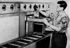 Toronto. In a March, 1950 article in Popular Science magazine, a “Robot” was shown in a military darkroom. The gadget processed 8×10 colour negatives. A time was MANUALLY set for each bath, then the Robot took over, dunking the films in each bath for the specified time, then moving the batch on to the next tank.