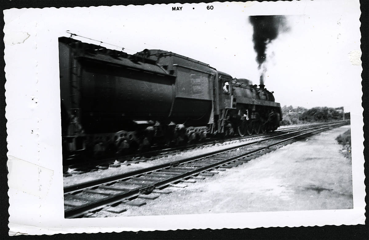 The photo at left is just slightly out of focus (perhaps due to the film speed, or the camera setting, or the photographer just may have moved slightly).In any case, the photo shows an engineer pulling into a station on his last run before retiring some 65 years ago.