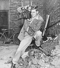 Mike is pictured at right with a press camera, courtesy of the Carmichael Family