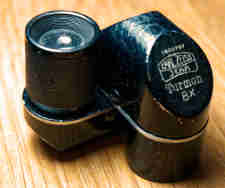 After the death of founder Carl Zeiss, the company expanded rapidly making all things optical or scientific. In 1921, the company began to market a tiny well designed and well made Turning monocular. The little gadget was an 8x, 21mm diameter device code named Turmon. Easily unfolded to drop in a waist-coat pocket, the tiny device when folded gave a upright image correct from left to right thanks to the built-in roof prisms borrowed from a binocular. Five years after it was marketed, mighty Zeiss was tapped to bring order to the chaotic post-war German camera market and Zeiss-Ikon was formed.