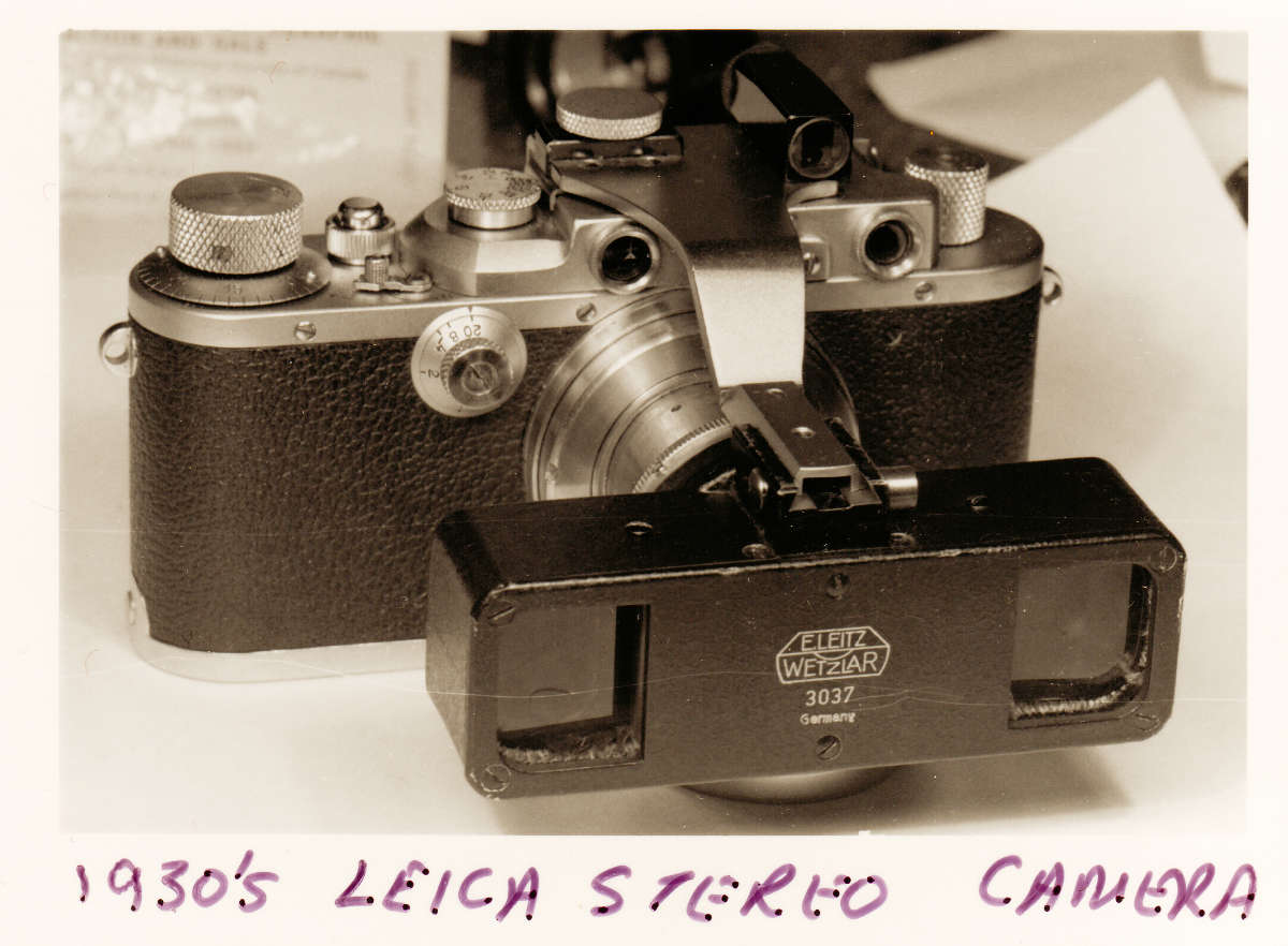 The following month, I got a call from Alex suggesting we meet in a North York restaurant. I met Alex and he carefully pulled a very old STEREOLY (c1939) from his pocket. Inside a matching tiny brown leather case was the tiny beam splitter complete with a ‘four notch’ arm and viewer to slide into the camera’s accessory shoe and hold the prism against the camera lens. After a lengthy discussion, I agreed to buy the device.