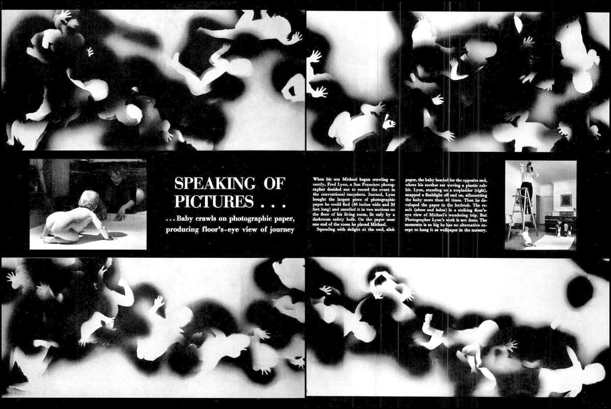 This is a shot by LIFE photographer Fred Lyons of San Francisco of his baby son Michael crawling across the floor on a large sheet of photographic paper.