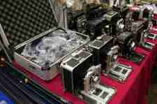 Toronto. Our fairs often display a wide range of cameras – both in age and in size. Here at our spring 2017 fair is a table of c1960s large format cameras often used by professional photographers to get negatives suitable for the publications of the day.