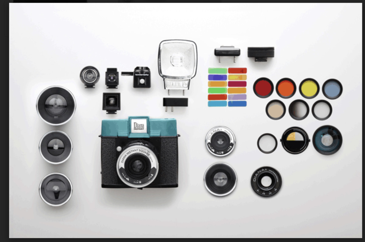 Read this press release to learn about the many attachments and special look imparted by this camera on your photos. The accessories are the same ones made for the Diana F+ Roll film camera.