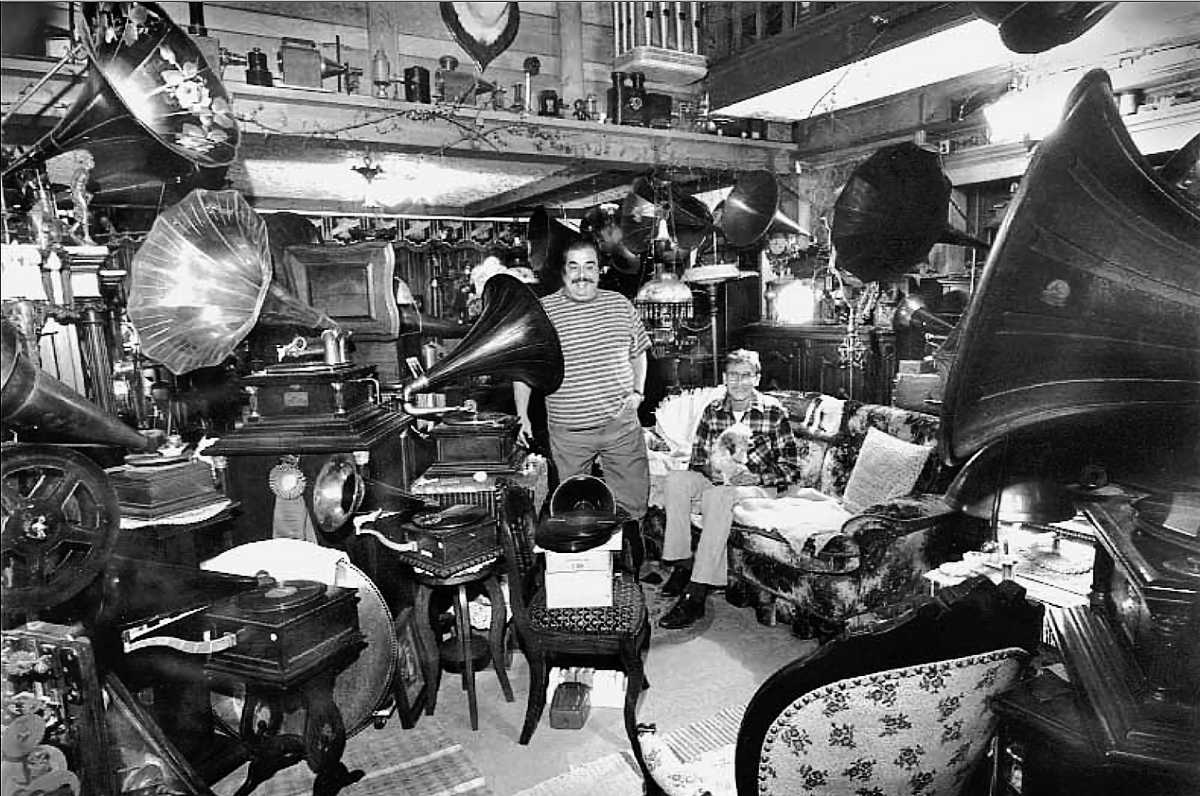 “In all directions, in every nook, covering every wall and shelf were hundreds of examples of old gramophones with their big horns, and movie projectors with their golden brass sprockets and gears. This collection had, in fact, taken over the house, taken over a double garage, taken over the loft, and, as I found out, taken over several other storage facilities.