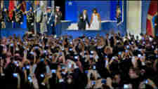 George Dunbar sent me this remarkable shot of smart phones and digital cameras taking photos of the Obamas – seemingly far more charming and loved than The Donald. All you see is a sea of digital screens and hands held overhead … Changin’ indeed!