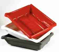 The trays could be plastic like those shown here courtesy of this Ebay link, hard rubber, or home-made from plywood using liners cut from very thin plastic tarp material. Regardless of size, using the same tray for the same chemistry minimized washing time and cross contamination.