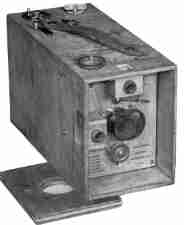 “This 4 x 5 inch model has a roll-fllm back, although a plate back was interchangeable. The camera consists of two wooden boxes, one moving inside the other to focus the image. Focussing is accomplished by moving the sliding lever which projects beside the footage scale.”