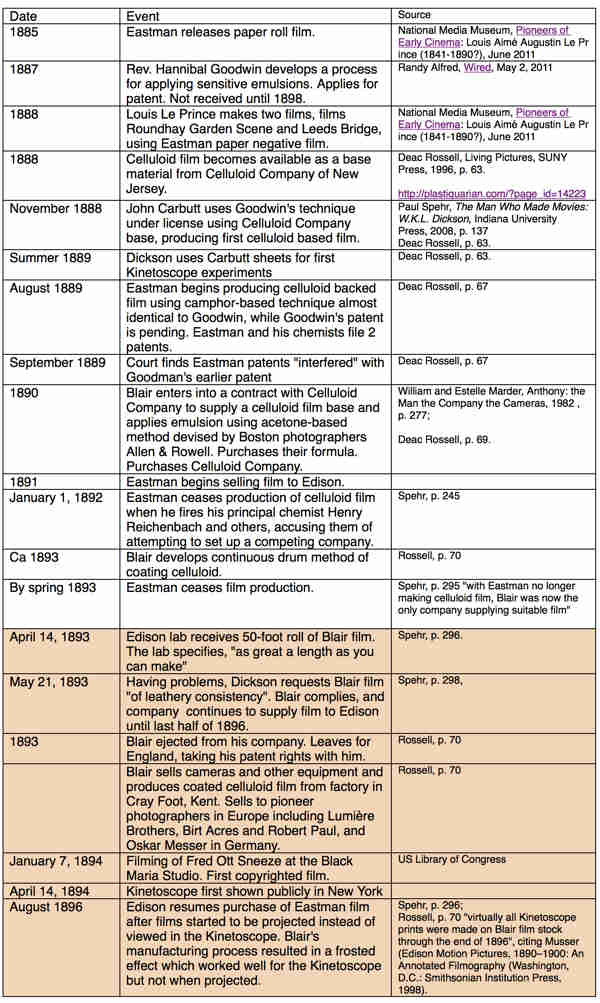 I dismissed any thought of Fred Ott until just the other day when Haligonian Jeff Ward dropped me a note. Jeff was one of the speakers last summer when we celebrated Canada 150. Jeff is writing a presentation on Blair, a contemporary of Eastman and also a Nova Scotian. Jeff’s research included a Library of Congress web site on Mr Ott and his famous sneeze. The date and film used are in conflict with the Kodak record as noted by Ms Brayer and Mr Collins. If you have sound proof of the date and film used, drop me a note. Perhaps the movie was recorded twice? Once before the Chicago fair and not used, and again the following year when the Kinetoscope apparatus was ready for use.
