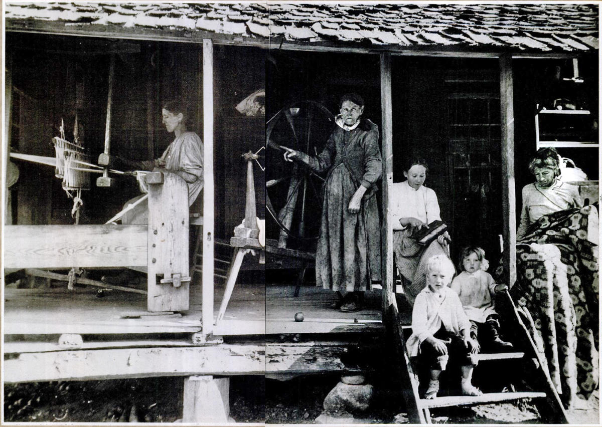 . This photograph was taken in Appalachia way back in 1914 by William Barnhill. It shows impoverished women forced to be household drudges and field hands, aging to old hags within a few short years of the heavy labour. To do mundane tasks like converting wool to clothing and linen, they worked with primitive manual machines.